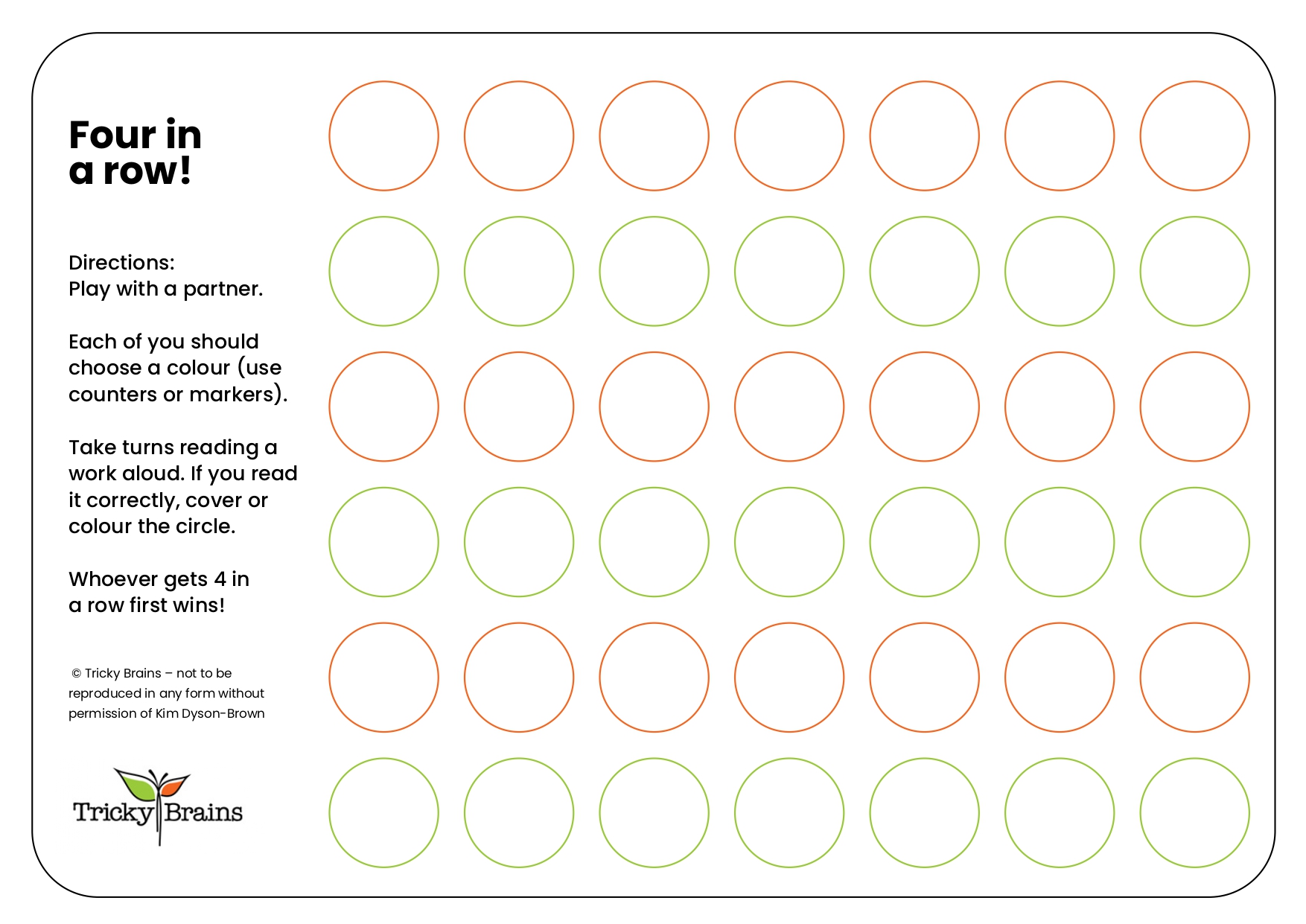 Editiable PDF template of ‘Four in a Row” gameboard.